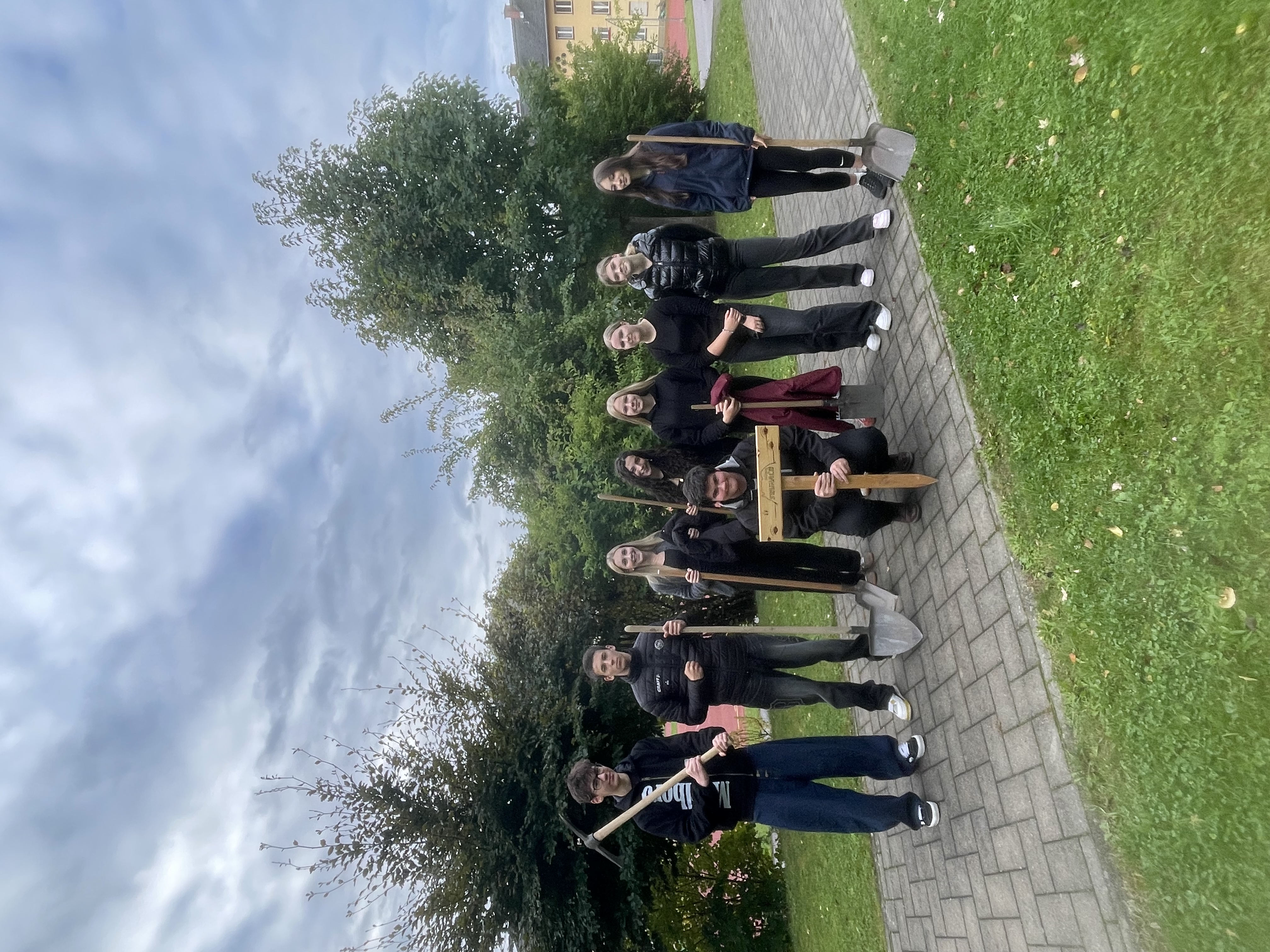 Nominiert von der MS Gröbming, dem Stiftsgymnasium Admont und der HBLFA Raumberg-Gumpenstein, haben auch wir bei Tau und Nebel unseren Schulhof mit einem neuen blutroten Ahorn verschönert. Passend zur herbstlich-schaurigen Jahreszeit trägt unser Baum den Namen „Wednesday“ – ein Hinweis auf den Tag seiner Pflanzung. Ein besonderer Dank gilt dem Schulverein GymStain, der uns den Baum zur Verfügung gestellt hat. Die Anlieferung erfolgte durch unseren Herrn Direktor höchstpersönlich, der Wednesday geschickt in seinem „Monsterauto“ verstaute und sicher in den Schulgarten brachte.