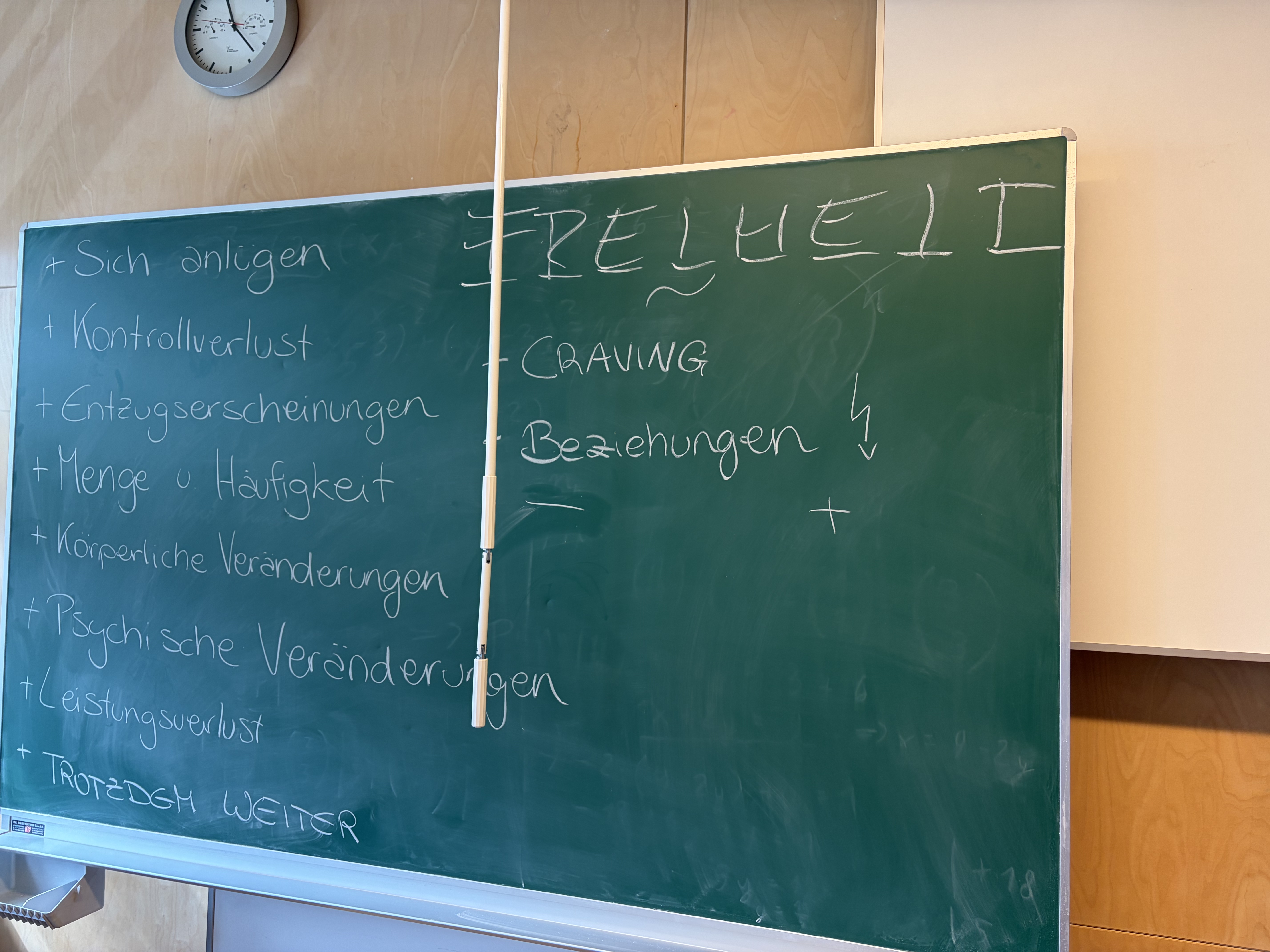 Die 7B. Klasse am BG/BRG Stainach hatte am Dienstag, 07.04.26, , die Möglichkeit an einem Workshop zum Thema Sucht teilzunehmen. Von der Entstehung einer Sucht, über die verschiedenen Arten, bis hin zu den Folgen und dem Entzug wurde alles authentisch versucht nachzufühlen. Zusammen mit den Projektleitern Mag. Stefan Pree und Silvia Schenk von der Caritas konnte in 3 Schulstunden viel neues Wissen über Drogenmissbrauch gesammelt und auch die ein oder andere spannende Diskussion geführt werden. Wir bedanken uns recht herzlich für diesen informationsreichen Workshop!