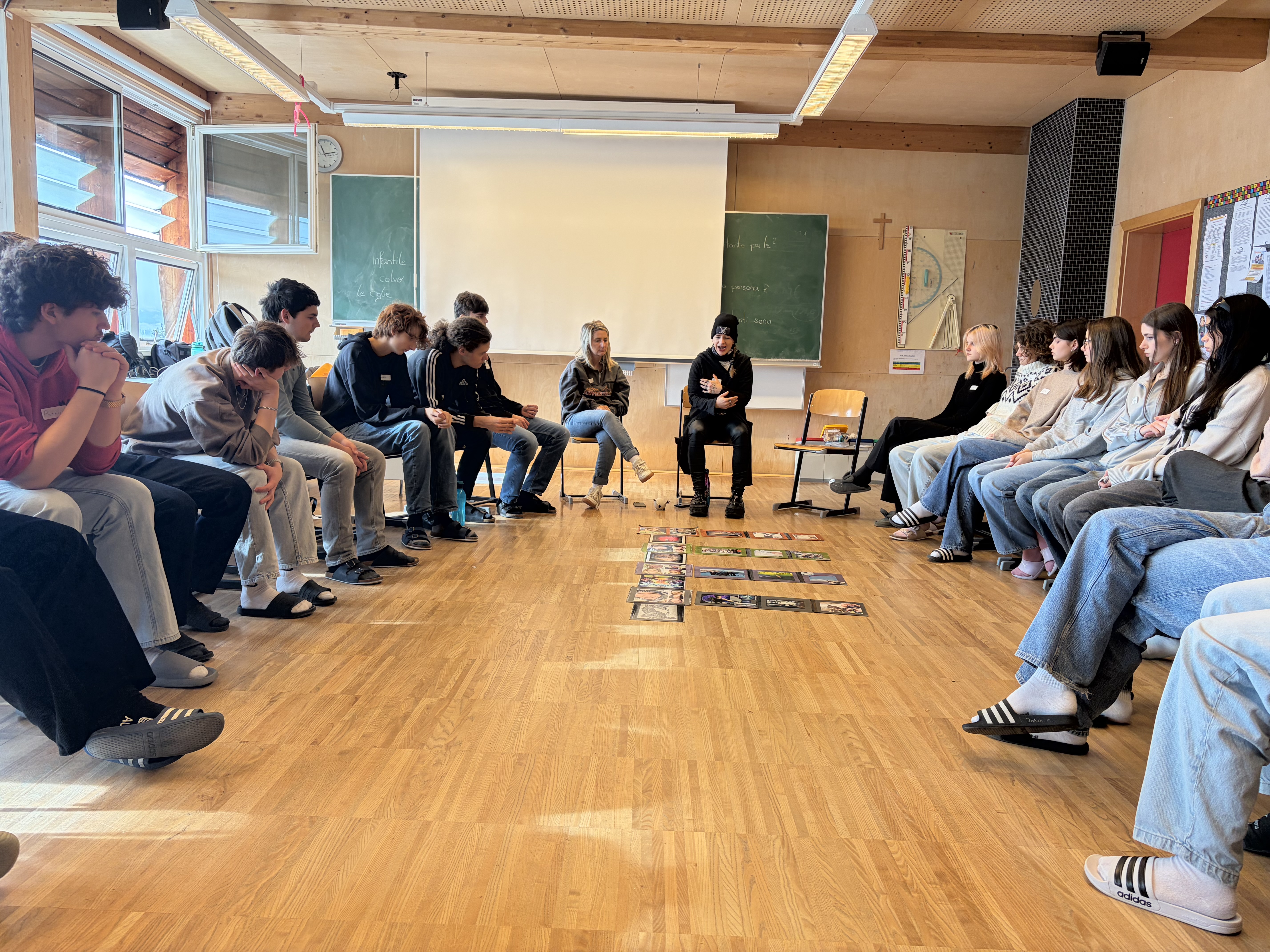 Den Höhepunkt des Workshops bildete zweifellos der Erfahrungsbericht von Charly. Mit beeindruckender Offenheit erzählte sie von ihrer eigenen Krise und ihrem Weg zurück in ein selbstbestimmtes Leben. Mithilfe einer selbst erstellten Timeline gab sie den Jugendlichen einen tiefen und ehrlichen Einblick in ihre Geschichte – ein Moment, der viele berührte und zum Nachdenken anregte.