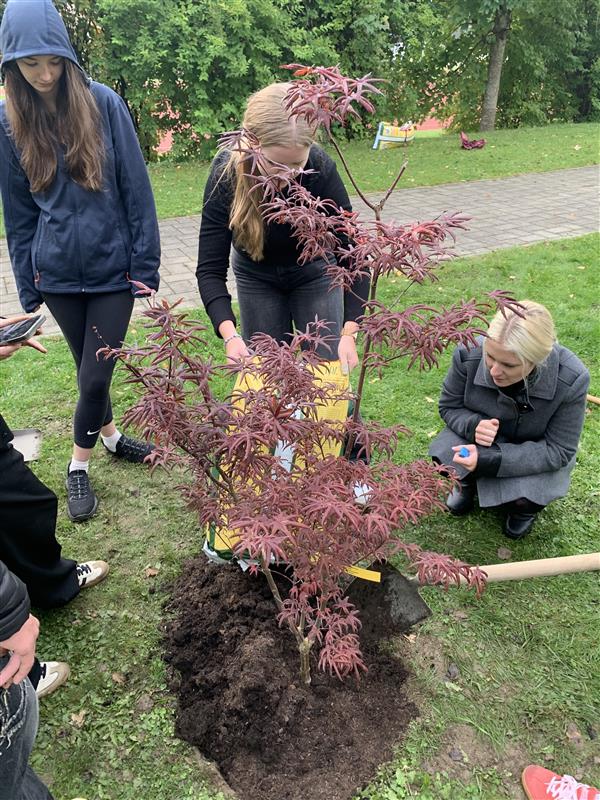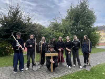 Nominiert von der MS Gröbming, dem Stiftsgymnasium Admont und der HBLFA Raumberg-Gumpenstein, haben auch wir bei Tau und Nebel unseren Schulhof mit einem neuen blutroten Ahorn verschönert. Passend zur herbstlich-schaurigen Jahreszeit trägt unser Baum den Namen „Wednesday“ – ein Hinweis auf den Tag seiner Pflanzung. Ein besonderer Dank gilt dem Schulverein GymStain, der uns den Baum zur Verfügung gestellt hat. Die Anlieferung erfolgte durch unseren Herrn Direktor höchstpersönlich, der Wednesday geschickt in seinem „Monsterauto“ verstaute und sicher in den Schulgarten brachte.