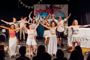 In der ersten Schulwoche hieß es für das KuK-Team: Here we go again! Denn die KuKis ver-wandelten aufgrund der großen Nachfrage das CCW-Stainach erneut in eine griechische Insel. Mit einem mitreißenden und farbenfrohen Spektakel präsentierten die Kunst- und Kulturschü-ler:innen am 12. und 13. September ihre Version des Musicals „Mamma Mia“ im CCW-Stainach. Die Darsteller:innen, gekleidet in sommerliche Kostüme, gaben eine beeindruckende Vorstel-lung ab und ließen das Publikum in die turbulente Geschichte um Liebe, Familie und die Suche nach der eigenen Identität eintauchen. Dabei reifte der Applaus der Zuschauer:innen von Szene zu Szene mehr und mehr zu einem DONNAwetter heran. Apropos Szene – das Bühnenbild, das Drehbuch, die dynamischen Tänze, die instrumentale Begleitung und die Gesangseinlagen wurden von den KuKis mithilfe ihres motivierten Lehrerteams selbst inszeniert. Umso mehr freuten sich die Jugendlichen, dass bei der Abendvorstellung am 12. September erneut viele Zuschauer:innen angespült wurden. Das Stück „Mamma Mia“ ist ein voller Erfolg und beweist einmal mehr die kulturelle Vitalität der jungen Künstler:innen des BG/BRG Stainach. Nun geht es bereits in die Ideenfindung für das nächste Stück. – Ihr dürft gespannt sein!