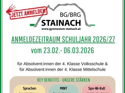Sowohl Schülerinnen und Schüler der 4. Klassen Volksschule als auch Absolventinnen und Absolventen der Mittelschule sind herzlich willkommen!